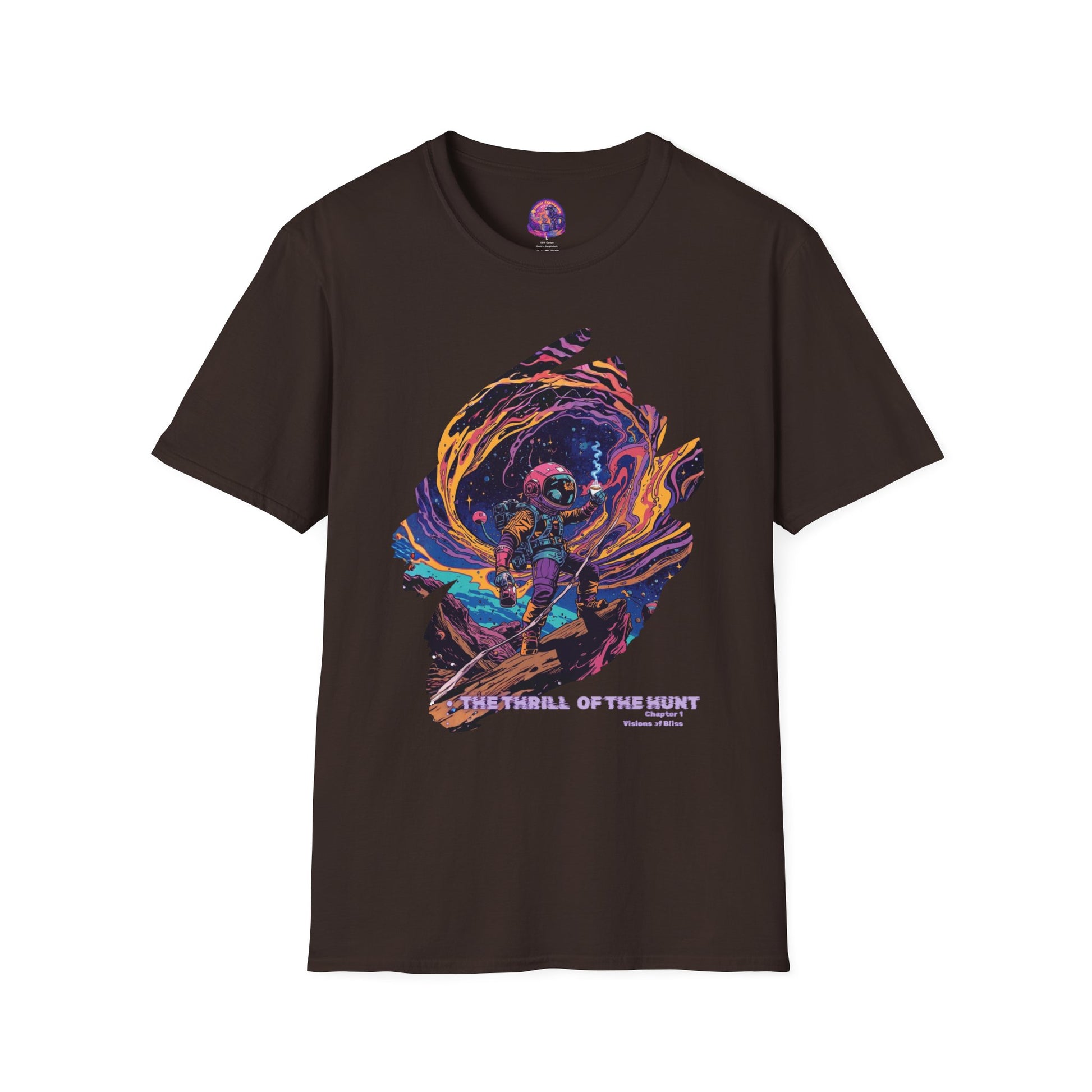 Astronaut Adventure T-Shirt — "Thrill of the Hunt" Neon Space Graphic